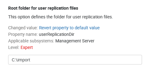 Configure the replication source directory by editing the userReplicationDir configuration property through System Settings. Usually, it is an absolute path on a local computer.