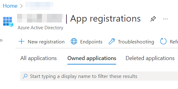 - Under Azure Active Directory, you can find your App registrations. Click New registration or select an existing one