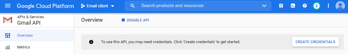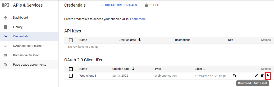 - Generated Client ID and Client Secret are available on the Credentials tab