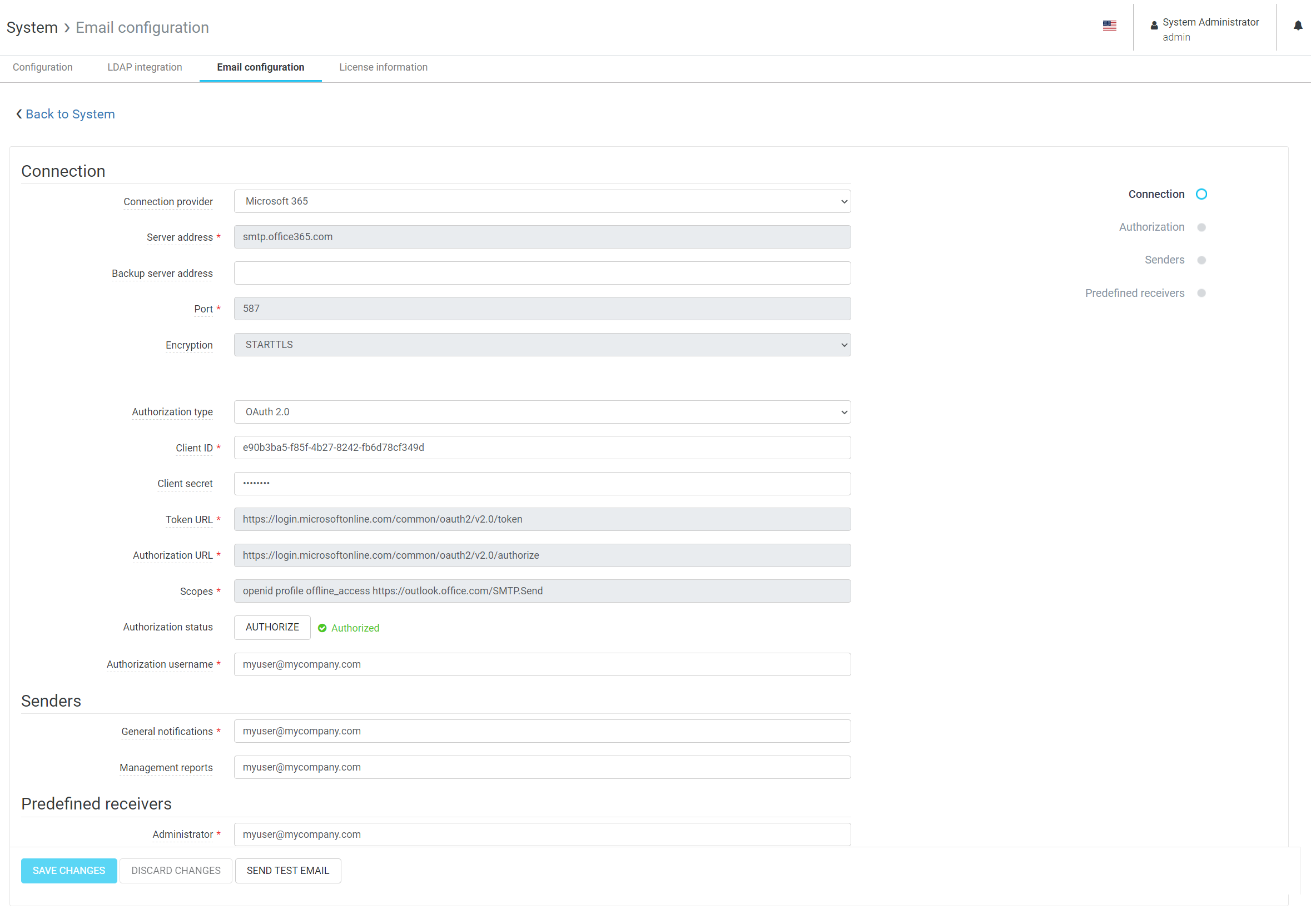 YSoft SafeQ is now set up to authorize emails using OAuth 2.0 with Microsoft.