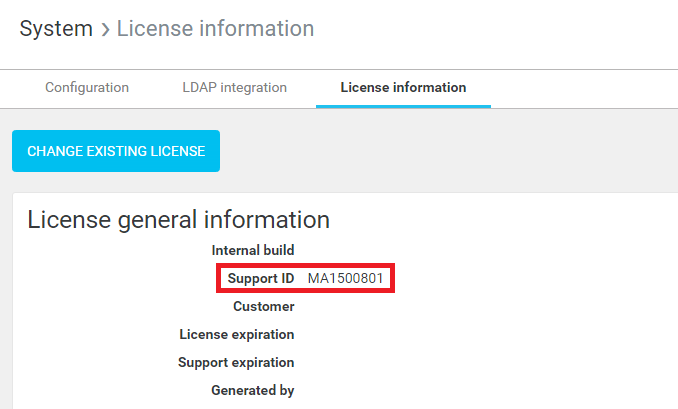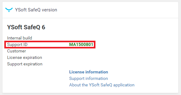 Support ID is a unique identifier of every 6 installation. All orders related to the installation are associated with one Support ID. Every Support ID is bound to the computer where the first activation has been done. If a customer orders additional features or devices, the activation code from the new order needs to be used on the same server as before, otherwise, the new features or devices will not be added successfully. In the case of a server cluster, all the activation codes need to be applied on the first license node.