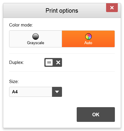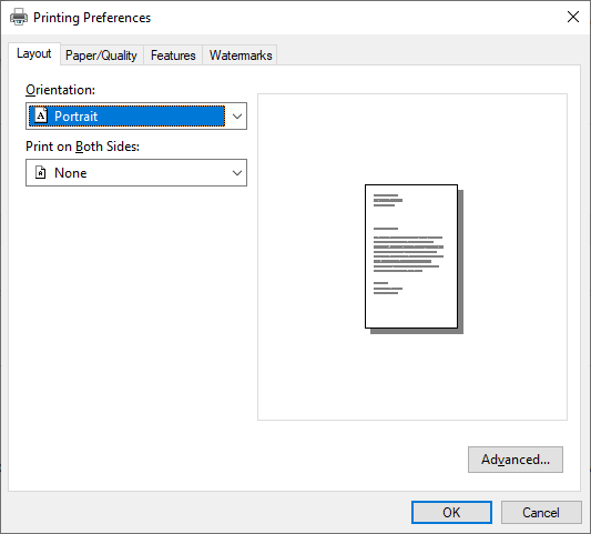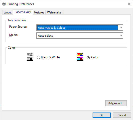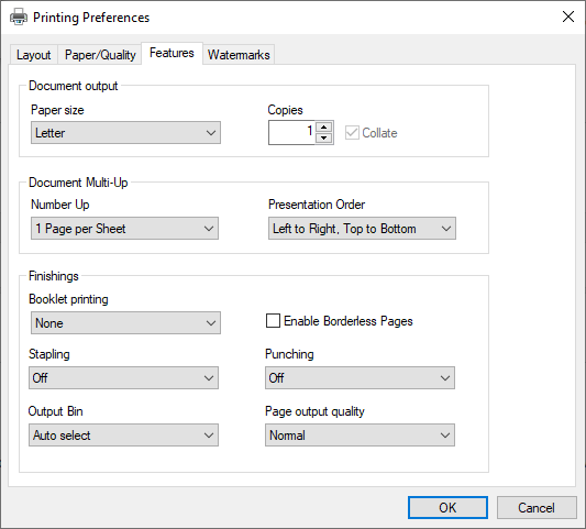 Provides an enhanced feature set, which allows users to configure print job settings or finishing options directly on their machine. There are also extra options like page output quality, document multi-up, or even text-based watermark.