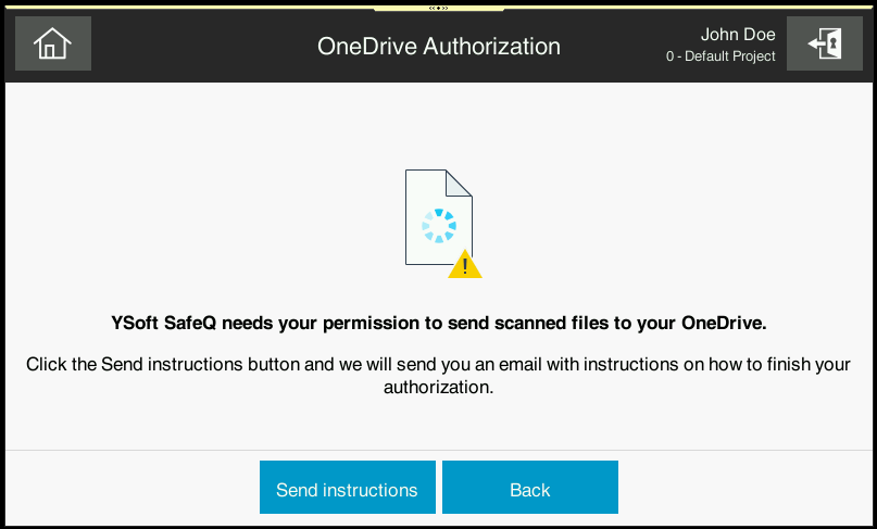 When the user has not yet granted the necessary permission, instructions appear that by clicking on Send instructions button the email with instructions on how to grant the access will be sent to the user's email.