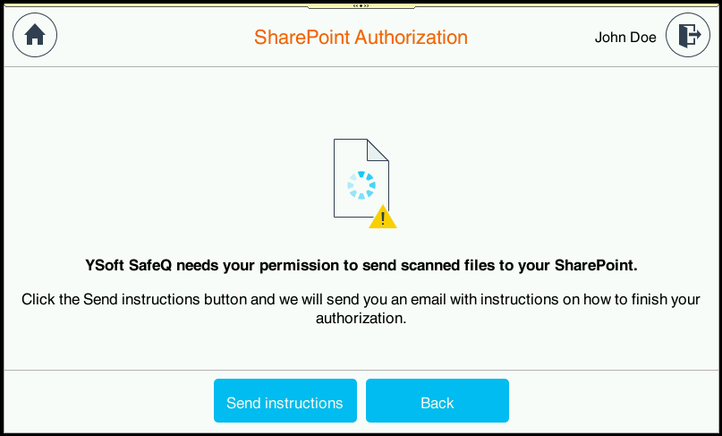 When the user has not yet granted the necessary permission, instructions appear that by clicking on Send instructions button the email with instructions on how to grant the access will be sent to the user's email.