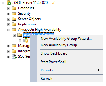 Navigate to AlwaysOn High Availability > Availability Groups > New Availability Group wizard...