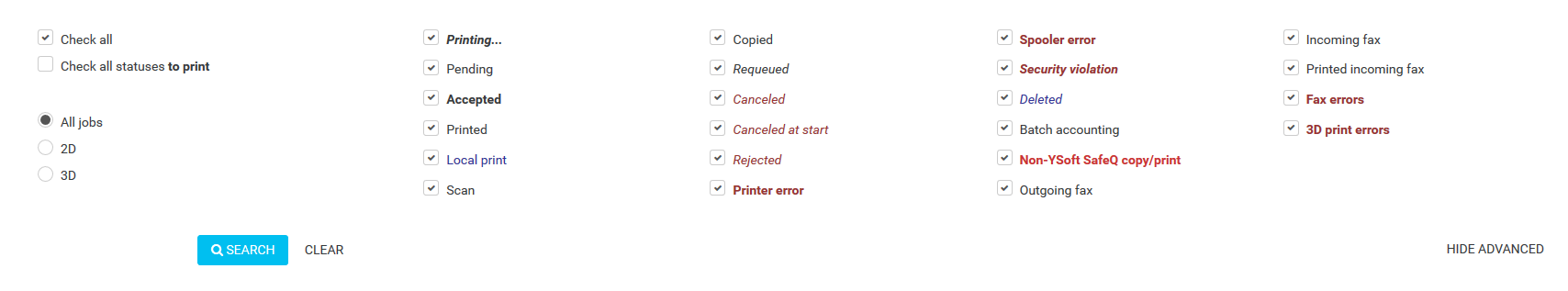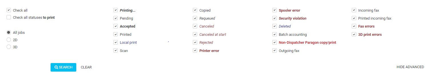 Select job status filters as follows: