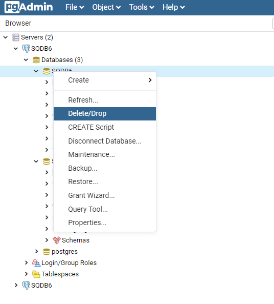 Delete the current databases