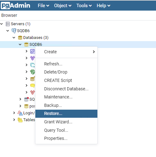 Restore the SQDB6 database from a backup file: