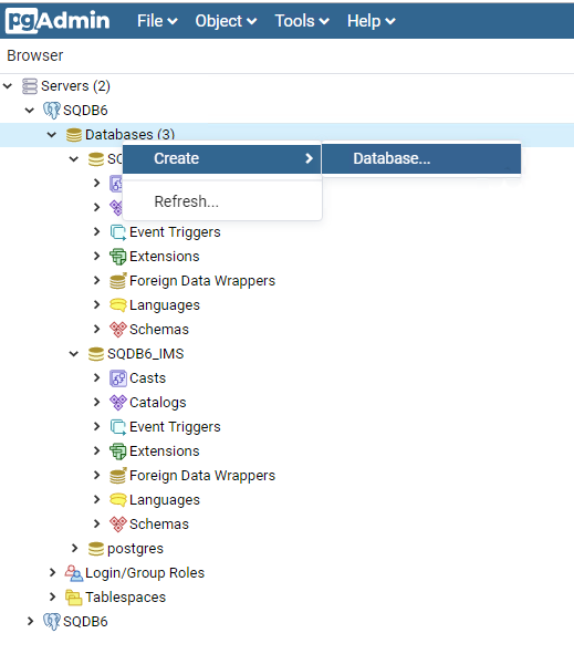 Right-click Databases > Create > Database