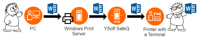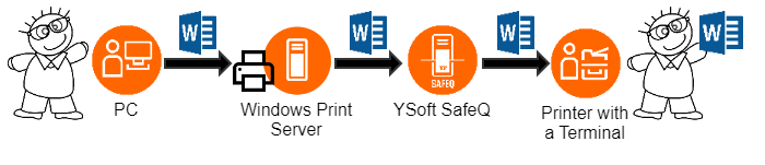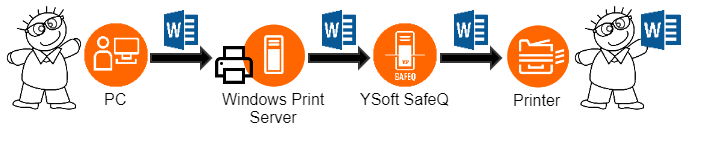 At this moment, the print queue will be connected to all user accounts in the Organizational Unit and users will see the printer in their Windows accounts when they log in. All print jobs will go through YSoft SafeQ with stopping there and will be immediately printed and accounted.