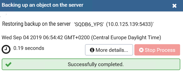 Popup appears with information that procedure ended successfully