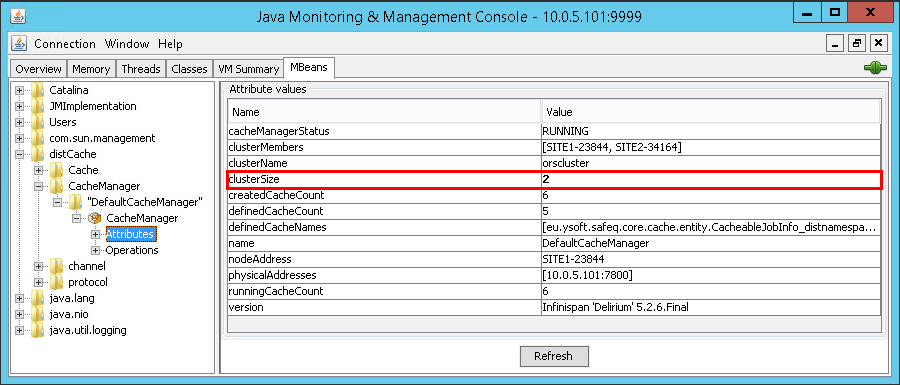 - Expand distCache > CacheManager > DefaultCacheManager > CacheManager and select Attributes.