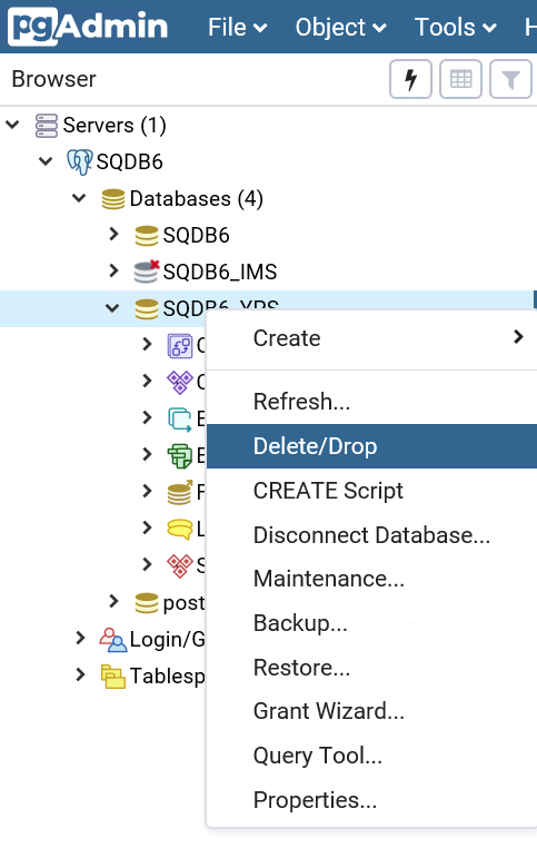 Delete the current SQDB6_YPS database: