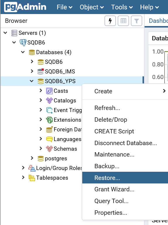 Restore SQDB6_YPS database from the backup file: