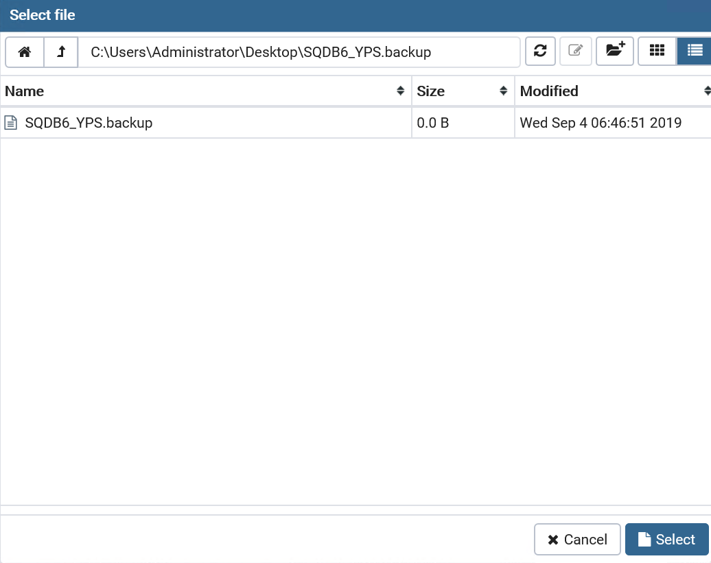 Select your backup file