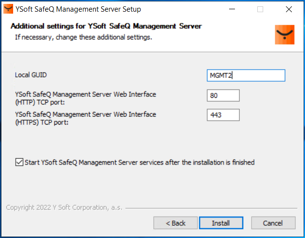 Tick the I want to customize my YSoft SafeQ Management Server option.
