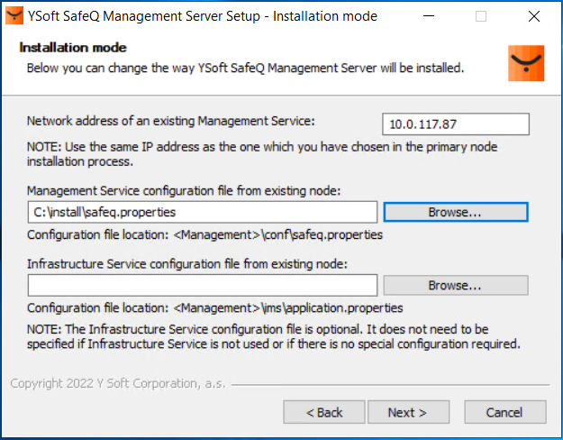 Choose the Add or replace a node in an existing YSoft SafeQ Management Server cluster option.
