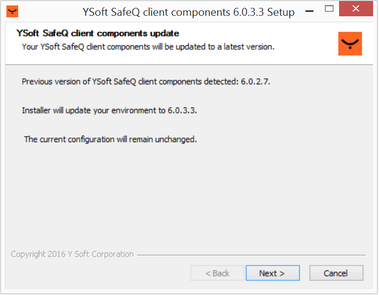 The update can be performed using the new version of the YSoft SafeQ client installer. You can use either the GUI wizard or a silent (unattended) installation.