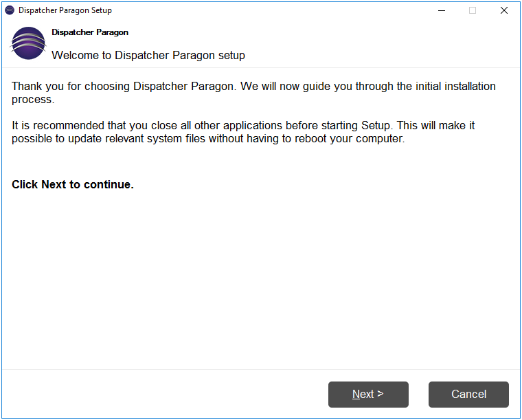 The user is notified that a wizard-like setup will guide them through the installation process.