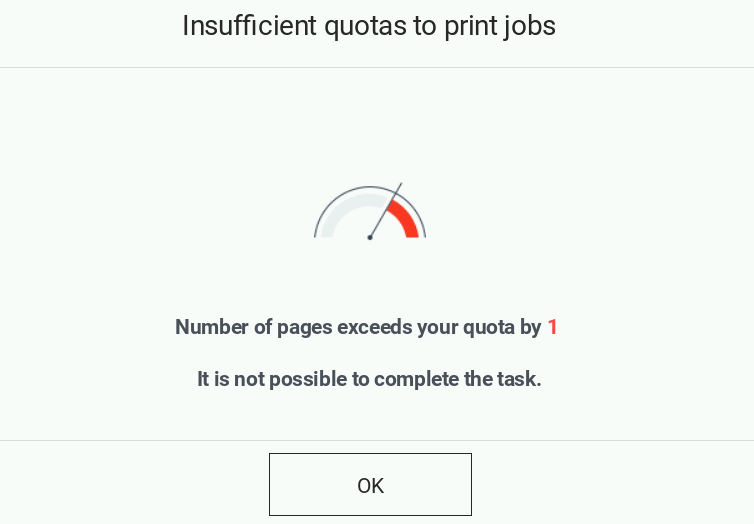 If the quota balance is not sufficient for the selected print job, the job will not be released for a print. Otherwise the print job will be released.