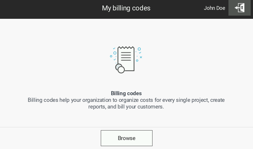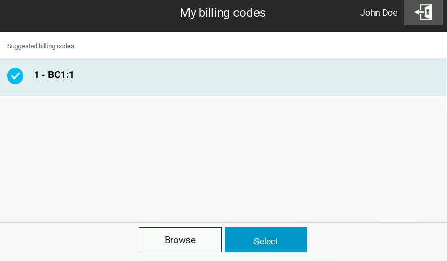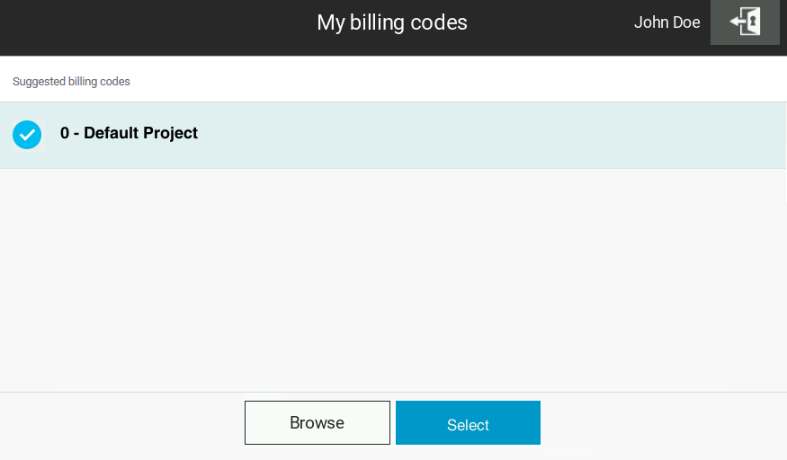 Billing code application will appear as the last part of user authentication process if the user has some available billing codes assigned. If the user has only one billing code assigned. This billing code will be automatically selected without the billing code selection process.