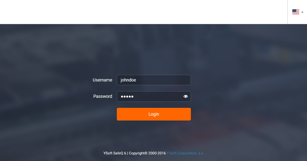 Only users with an existing account in YSoft SafeQ 6 can log into the YSoft SafeQ end user interface using their username and password.