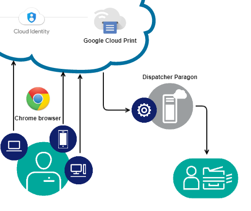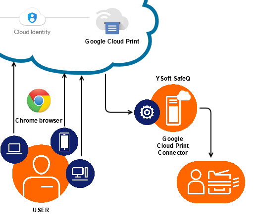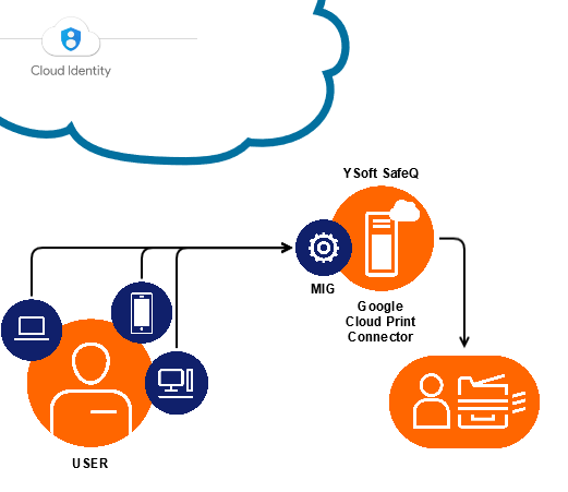 YSoft SafeQ can fully integrate with Google Cloud Print service over users' G Suite account and Cloud Identity.