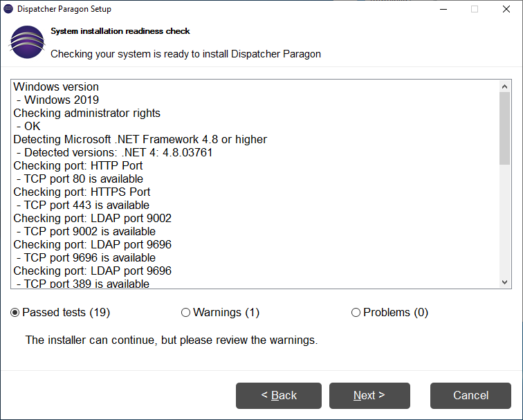 The pre-installation check performs a series test in order to verify if the server environment is suitable for installation. Currently, only basic tests are not being performed, but the list will grow in the future.