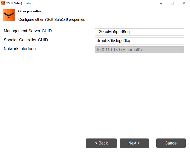 Find out the IP address and GUID of the newly installed YSoft SafeQ Management Server.Management Server GUID can be obtained from the web interface of the newly installed node at Management interface > Dashboard > System info widget.