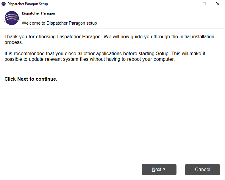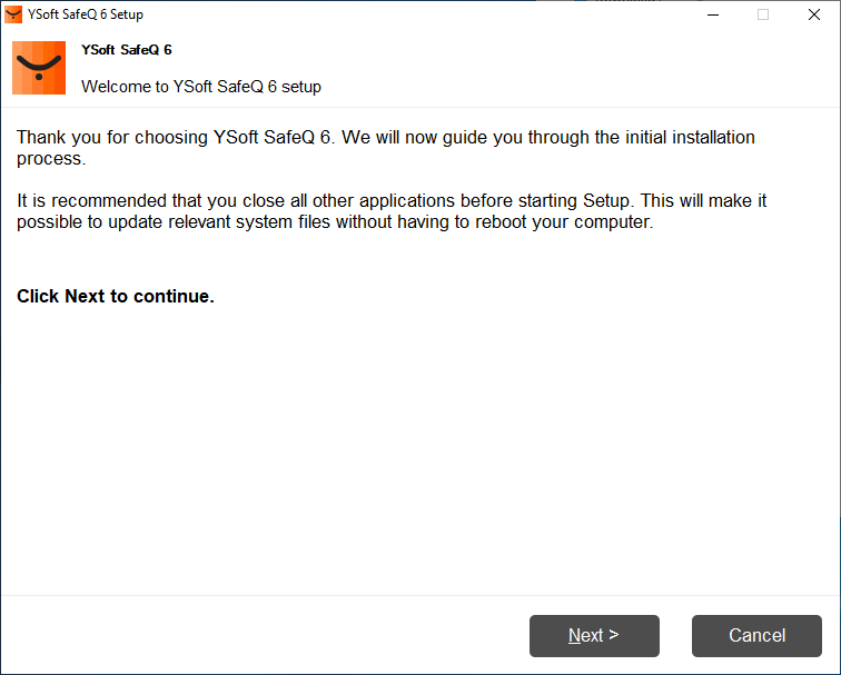 The user is notified that a wizard-like setup will guide him through the installation process.